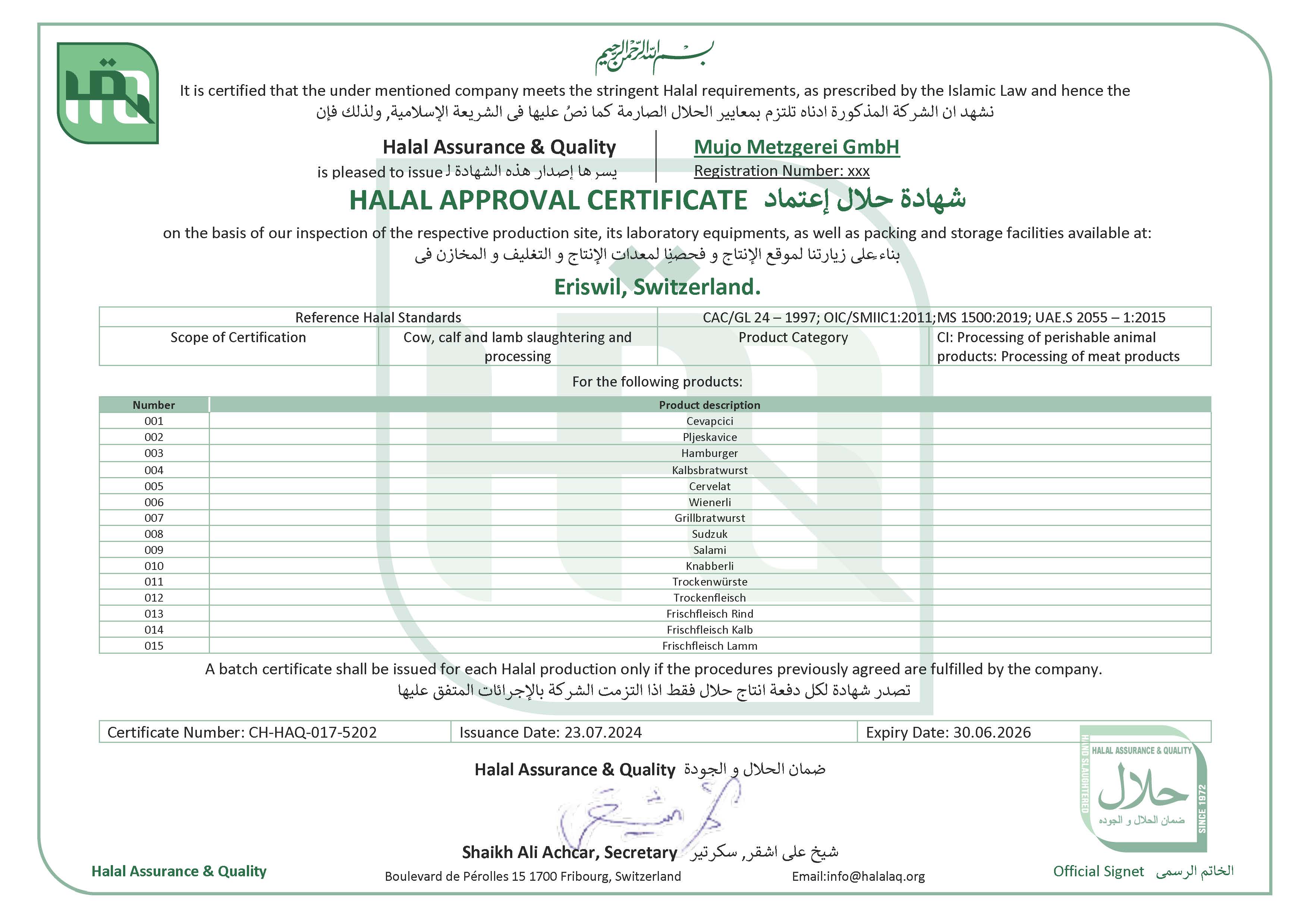 Unsere Halal-Produkte werden regelmäßig kontrolliert.